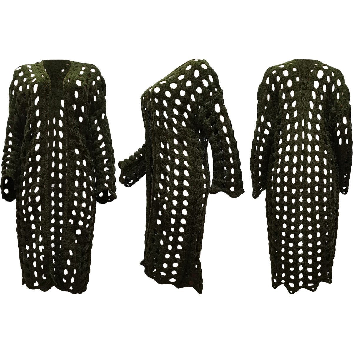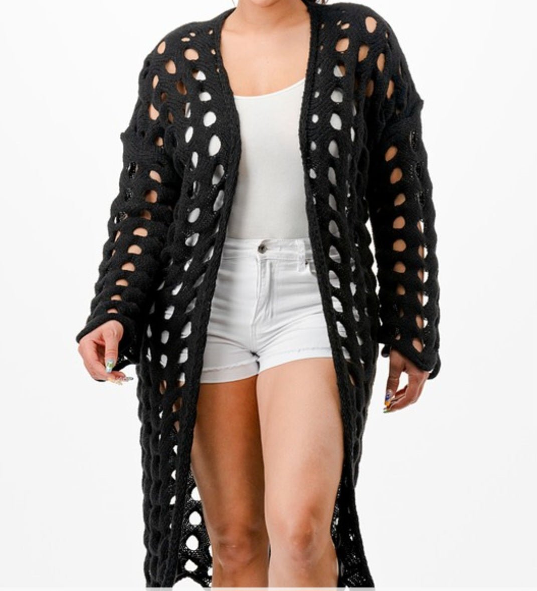 This knitted cardigan is handwoven and comes in a single size, Black.