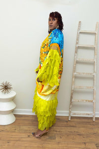 Designed for the woman who loves bold, confident style, this statement layering piece features vibrant colors and dramatic fringe detailing that moves beautifully with every step. From the sleeves to the hem, this duster brings instant energy to any outfit.